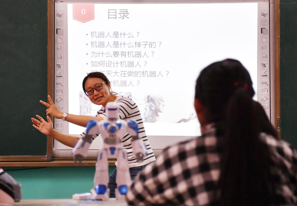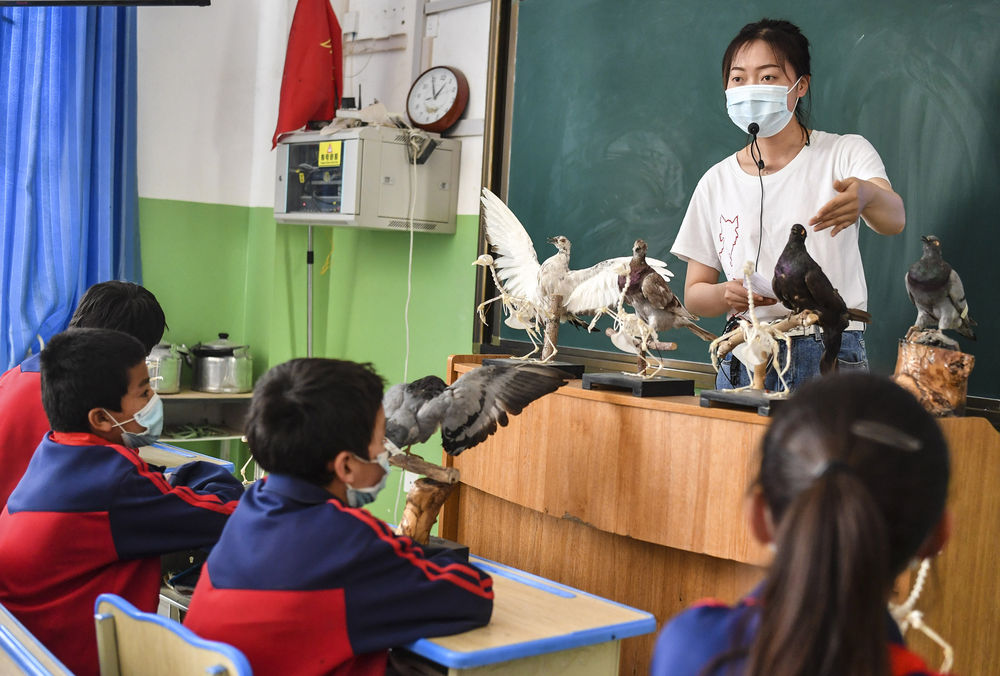 ↑新疆塔克拉瑪干沙漠腹地的小學生上科普課