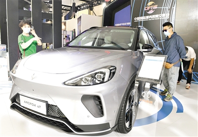 9月5日,觀眾在服貿(mào)會5G通信服務(wù)專題展區(qū)參觀一款5G智能汽車。記者 張晨霖 攝