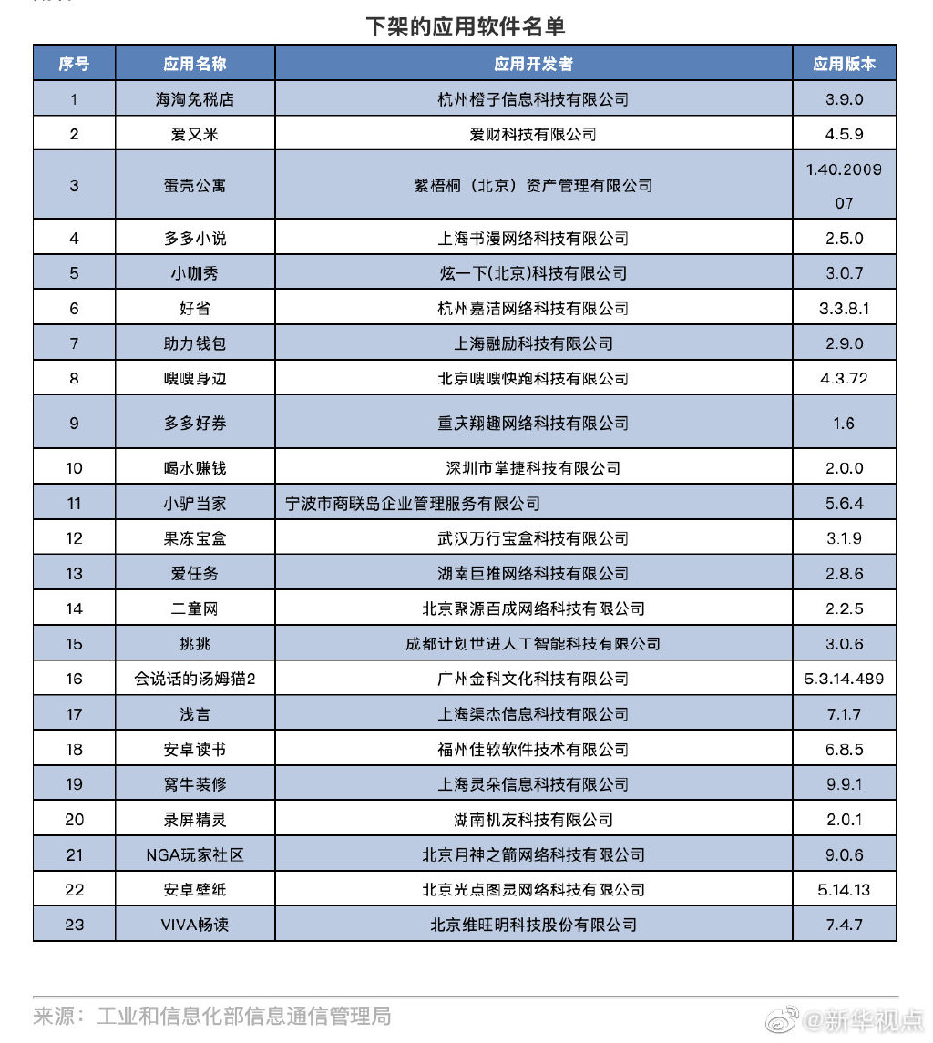 工信部14日消息,工信部此前向社會通報了101家存在侵害用戶權(quán)益行為APP企業(yè)的名單。截至目前,經(jīng)第三方檢測機(jī)構(gòu)核查復(fù)檢,尚有海淘免稅店、愛又米等23款A(yù)PP未按要求完成整改。根據(jù)相關(guān)規(guī)定,工信部組織對這些APP進(jìn)行下架。(記者 張辛欣) ????