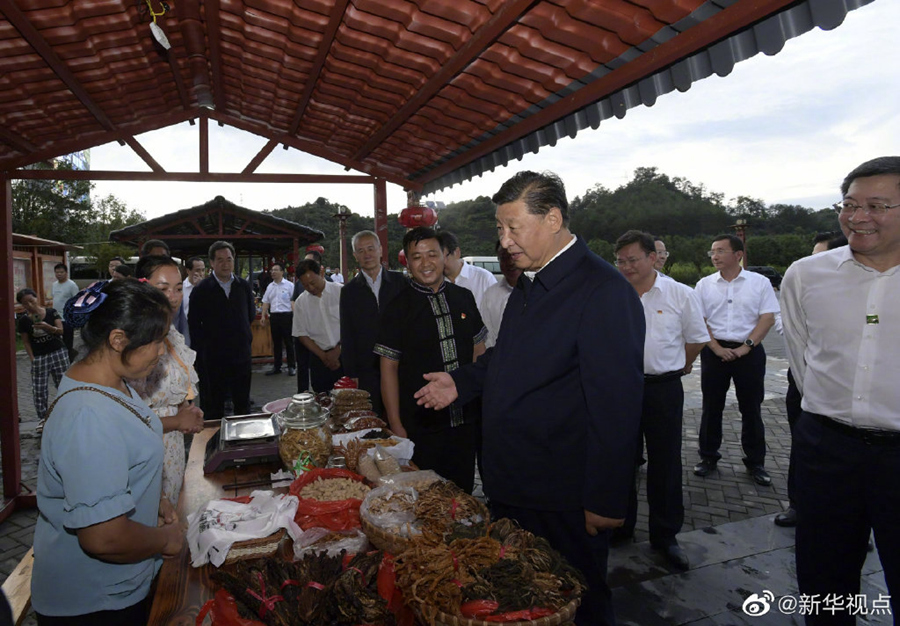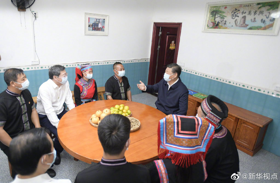 16日下午,在湖南省郴州市沙洲瑤族村考察調研的習近平總書記,走進“半條被子的故事”主人公徐解秀的后人——村民朱小紅家中。朱小紅告訴總書記,他在景區當講解員,家里還開了農家樂,已經脫貧,生活越來越好。他連連感慨,共產黨從給老百姓被子到給幸福路子,日子今非昔比。習近平強調:“因為有老百姓的支持,我們黨才有了光榮歷程、輝煌事業。你們家里的變化也說明一個道理,共產黨堅持為民本色,說到做到。”隨后,他步行來到村子廣場,村民們熱情歡呼著圍攏過來。習近平對鄉親們說,中國共產黨人自己有一條棉被也可以分半條給老百姓。建黨近百年不忘初心,老百姓把共產黨看成是自家的黨,是老百姓的黨。我今天到這里來,也是受教育。我作為一名共產黨員、作為一名共產黨的負責干部,本身也要不斷受教育、不斷受洗禮、不斷受啟示,履行好我的職責,同14億中國人民在一起、同9000多萬黨員在一起,把我們國家建設得更好,讓我們的老百姓更加開心、更加幸福。(文字記者張曉松、朱基釵 攝影記者李學仁、謝環馳、岳月偉)?
