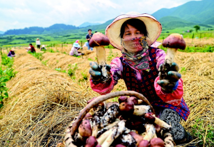 廈門援建和政縣夏潤赤松茸種植基地。赤松茸豐收農戶樂開懷。(圖片均為黃嶸攝)