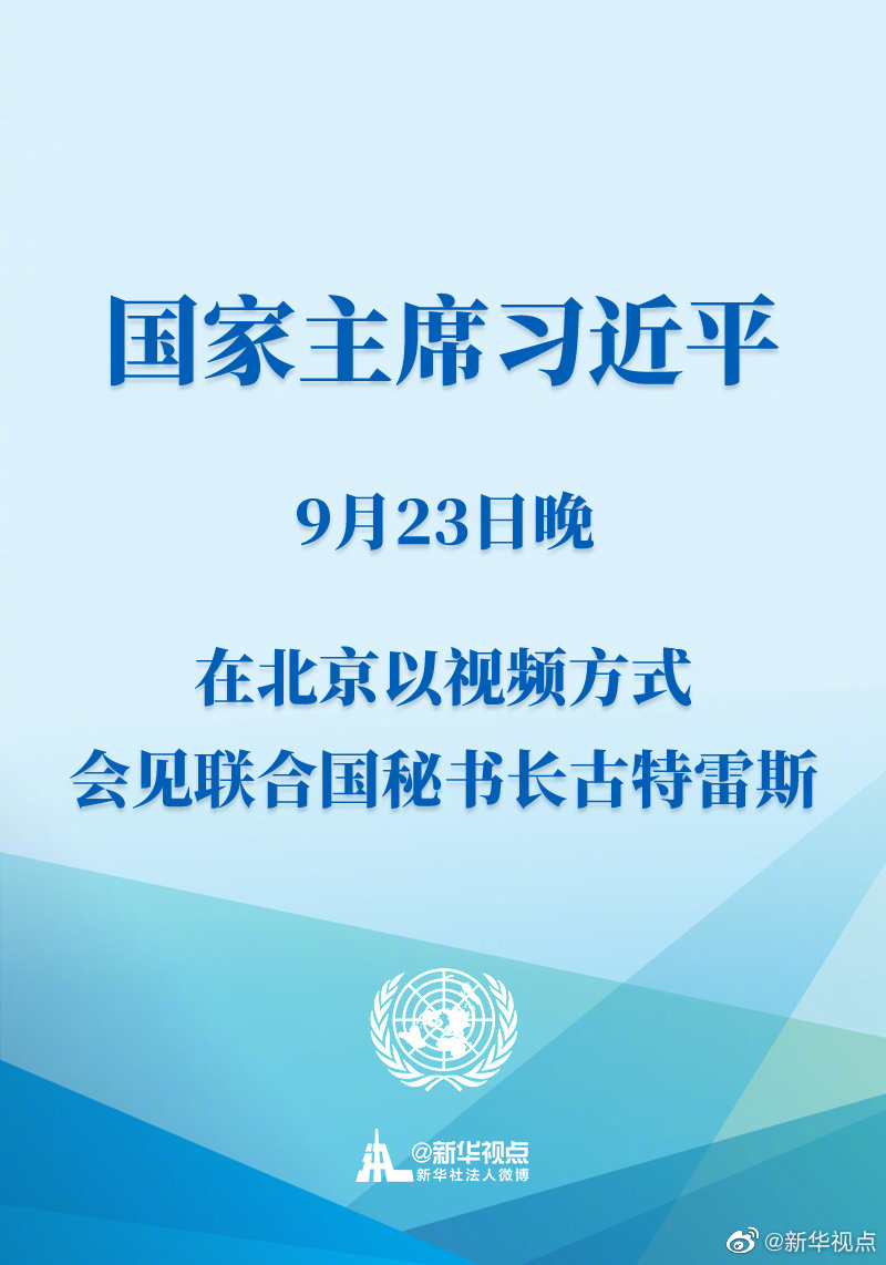 國家主席習近平23日晚在北京以視頻方式會見聯合國秘書長古特雷斯。 ????