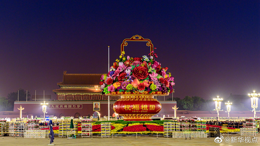 一睹芳容!天安門廣場“祝福祖國”大花籃來了