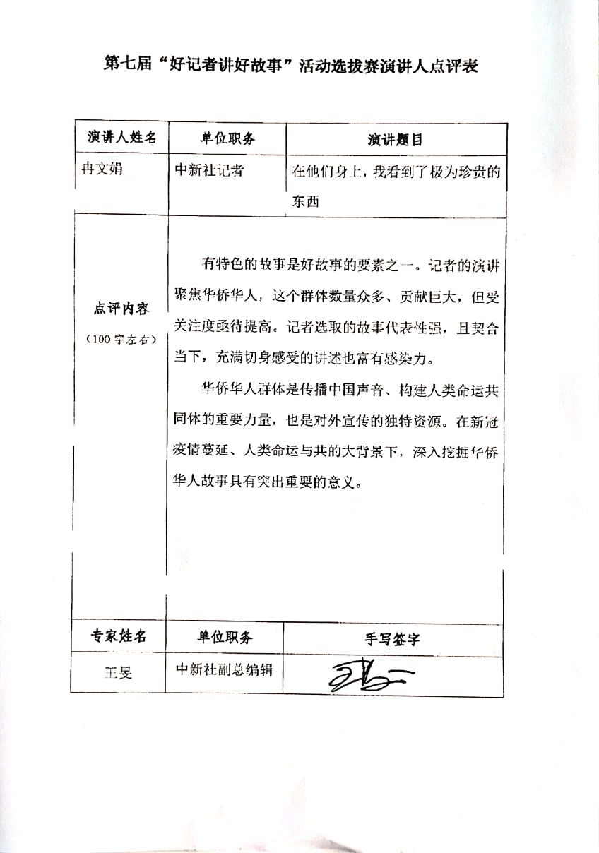 王旻點評冉文娟《在他們身上,我看到了極為珍貴的東西》-新華網