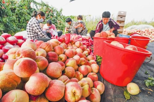9月22日,河北唐山遵化市團瓢莊鄉宋各莊村農民在收獲秋桃。新華社發(劉滿倉 攝)