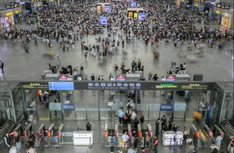 10月1日長三角鐵路發(fā)送旅客309.9萬人次,預(yù)計2日發(fā)送旅客248萬人次,其中上海鐵路全站2日預(yù)計發(fā)送旅客45.5萬人次 圖源 新華社