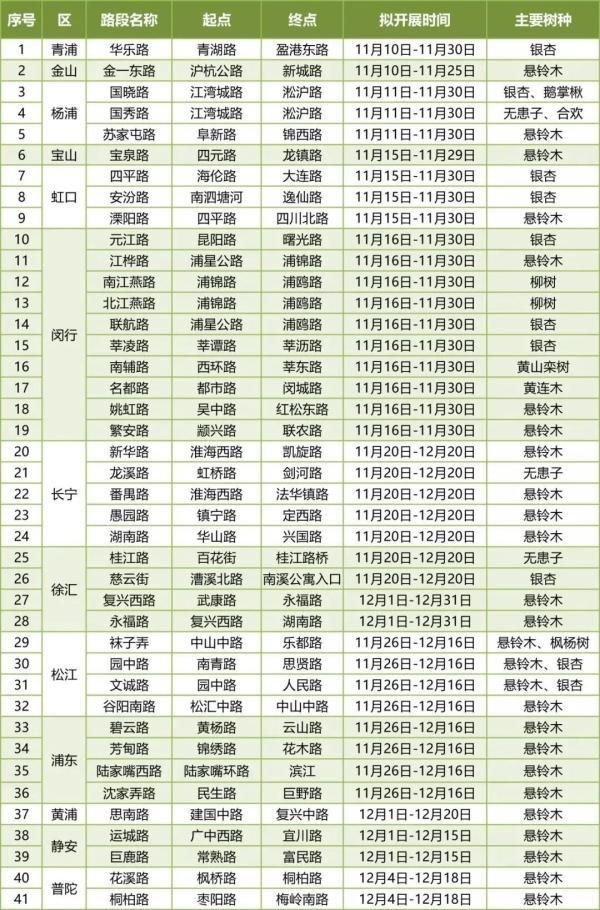 11月10日,上海市公布了2020年城市落葉景觀道路一覽表,13個區(qū)、41條道路將陸續(xù)開啟“落葉不掃”模式,上海市民又能選擇在不同的道路上欣賞到落葉美景了。
