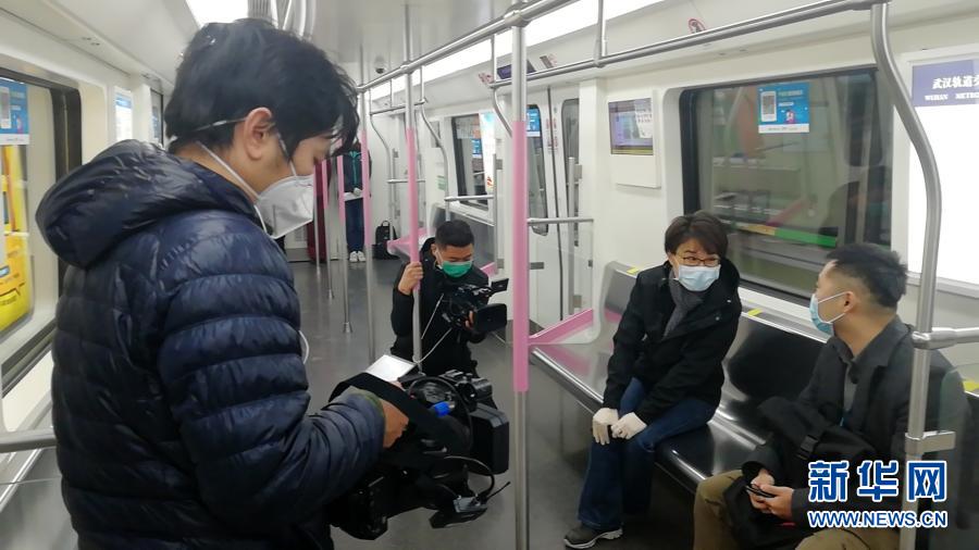 2020年3月,中央廣播電視總臺新聞中心記者董倩(右二)在武漢采訪報道地鐵重啟。新華社發