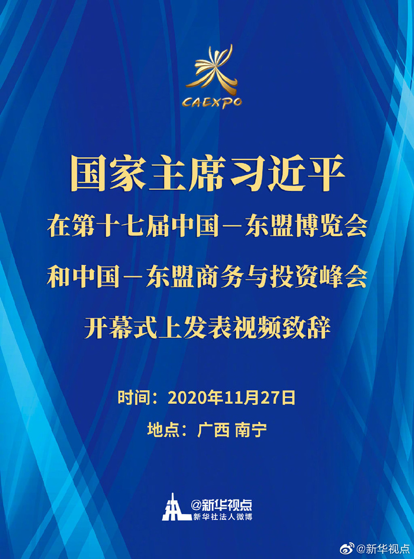 第十七屆中國-東盟博覽會(huì)和中國-東盟商務(wù)與投資峰會(huì)開幕式11月27日在廣西南寧舉行。國家主席習(xí)近平發(fā)表視頻致辭。?