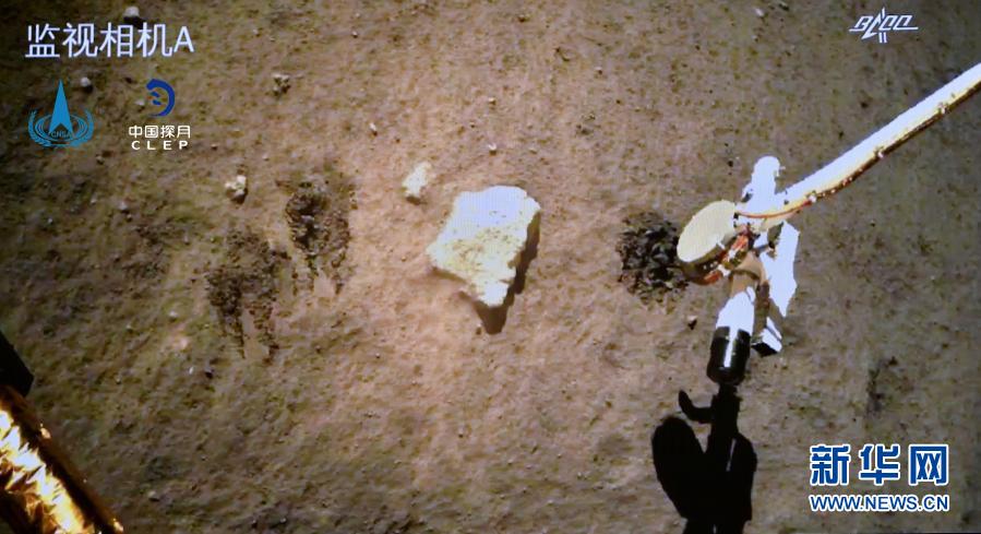 12月2日,嫦娥五號探測器在月球表面自動采樣。新華社發(fā)(國家航天局供圖)