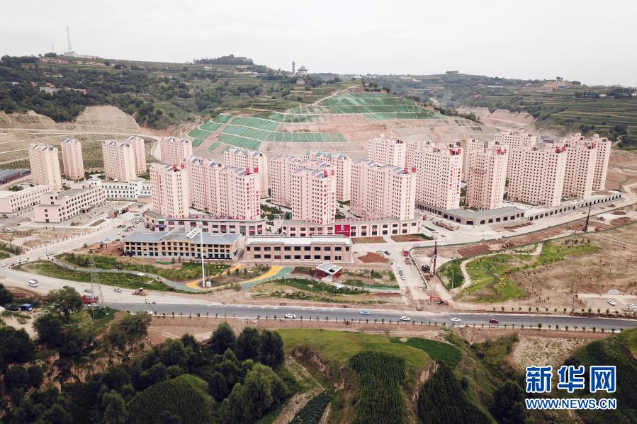 這是8月3日在東鄉(xiāng)族自治縣拍攝的縣城南區(qū)易地扶貧搬遷安置小區(qū)(無(wú)人機(jī)照片)。新華社記者 范培珅 攝