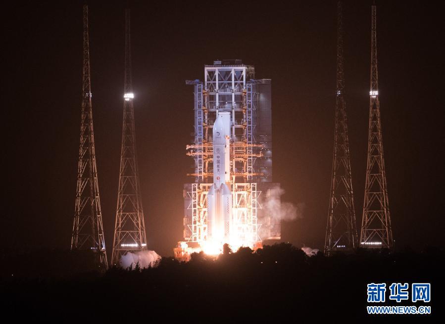 11月24日4時(shí)30分,我國在中國文昌航天發(fā)射場,用長征五號(hào)遙五運(yùn)載火箭成功發(fā)射探月工程嫦娥五號(hào)探測器,火箭飛行約2200秒后,順利將探測器送入預(yù)定軌道,開啟我國首次地外天體采樣返回之旅。這是長征五號(hào)遙五運(yùn)載火箭發(fā)射。新華社記者金立旺攝