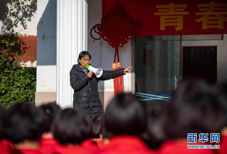 張桂梅在督促學生做課間操(12月2日攝)。新華社發(陳欣波 攝)