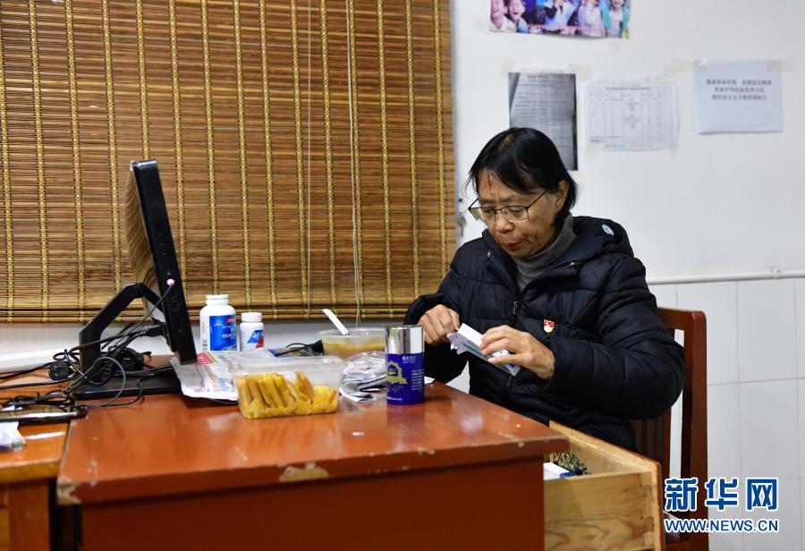 早上六點多,張桂梅在吃藥(12月2日攝)。新華社發(陳欣波 攝)
