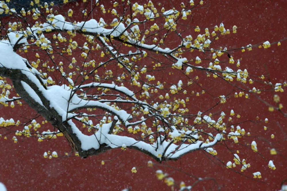 ↑這是2018年1月27日在南京市明孝陵景區(qū)內(nèi)拍攝的雪中梅。新華社發(fā)(王躍武攝)