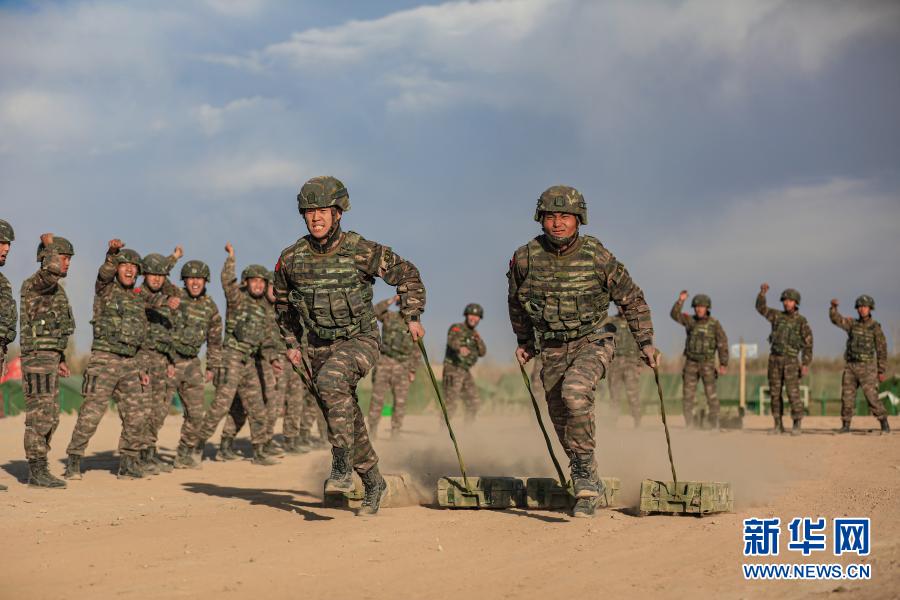 武警新疆總隊(duì)某機(jī)動支隊(duì)特戰(zhàn)一中隊(duì)組織官兵進(jìn)行搬運(yùn)子彈箱體能訓(xùn)練(10月30日攝)。新華社發(fā)(張文 攝)