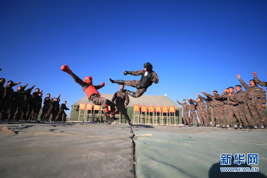 武警新疆總隊(duì)某機(jī)動支隊(duì)特戰(zhàn)一中隊(duì)組織官兵開展搏擊訓(xùn)練(10月31日攝)。新華社發(fā)(張文 攝)