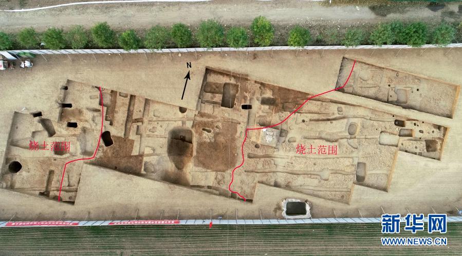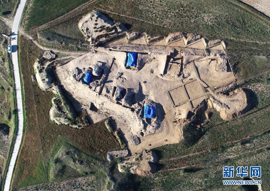 內蒙古后城咀龍山時代石城發掘區航拍圖。新華社發(國家文物局供圖)