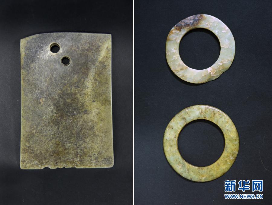 山東滕州崗上遺址出土的玉器(拼版照片)。新華社發(國家文物局供圖)