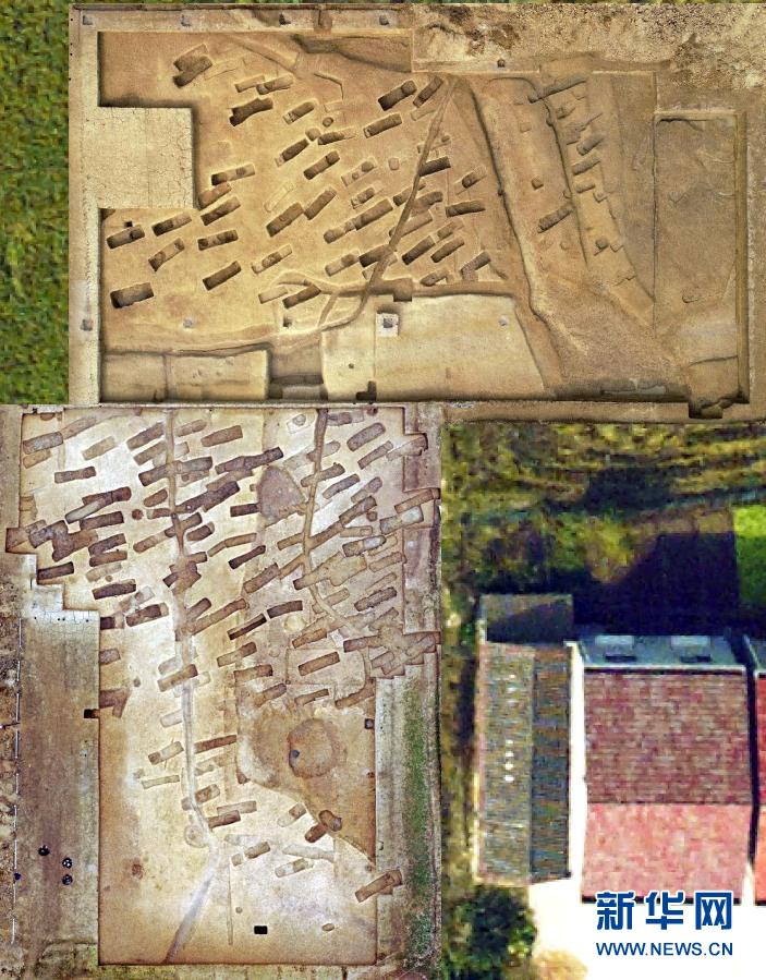 湖南澧縣孫家崗遺址墓地南區(部分)墓葬分布。新華社發(國家文物局供圖)