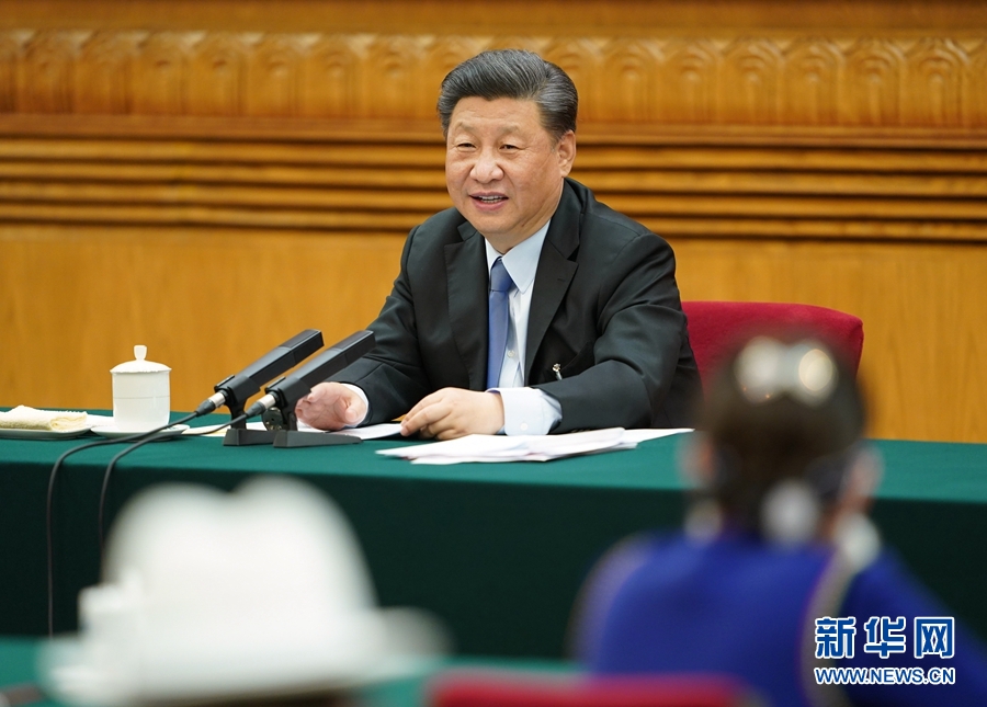5月22日,中共中央總書記、國家主席、中央軍委主席習近平參加十三屆全國人大三次會議內蒙古代表團的審議。 新華社記者 鞠鵬 攝