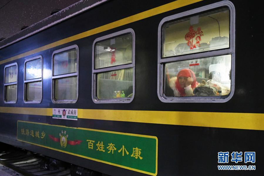 2020年1月10日,由蘭州開往武威南的7505次列車停靠在永登站,一名旅客望向窗外。由甘肅蘭州開往武威南的7505次列車是一列老式綠皮車,串聯起蘭州和武威兩座城市之間的十幾座小站。因為票價便宜、乘坐方便,它成為沿線鄉村群眾進城購物、售賣農產品、探親訪友、外出打工的首選交通工具。