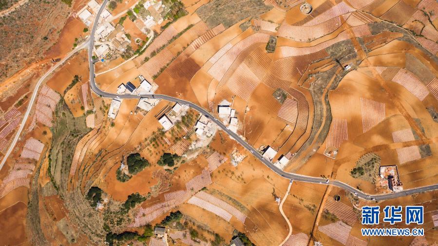 這是2020年4月26日拍攝的貴州路橋集團承建的貴州威寧縣域龍街至迤那路段(無人機照片)。