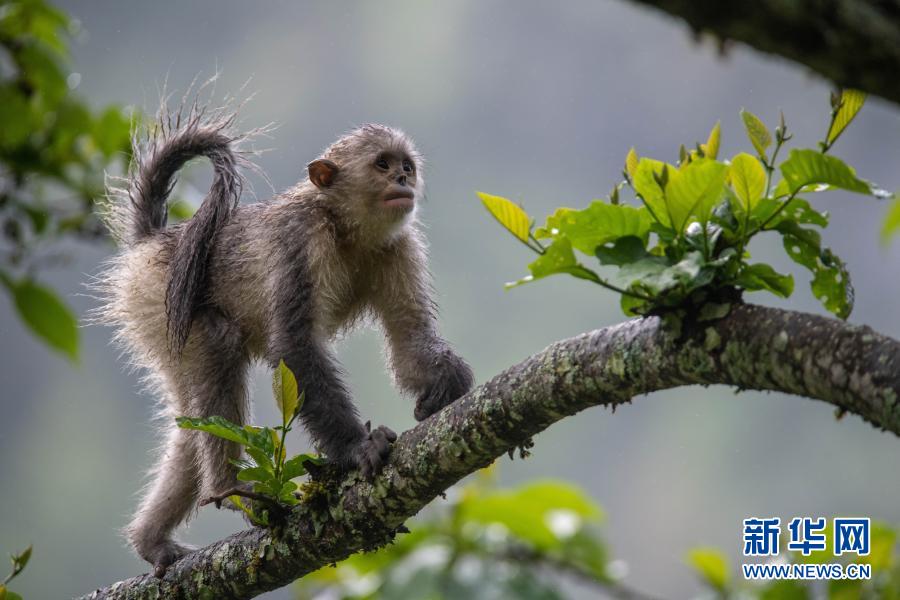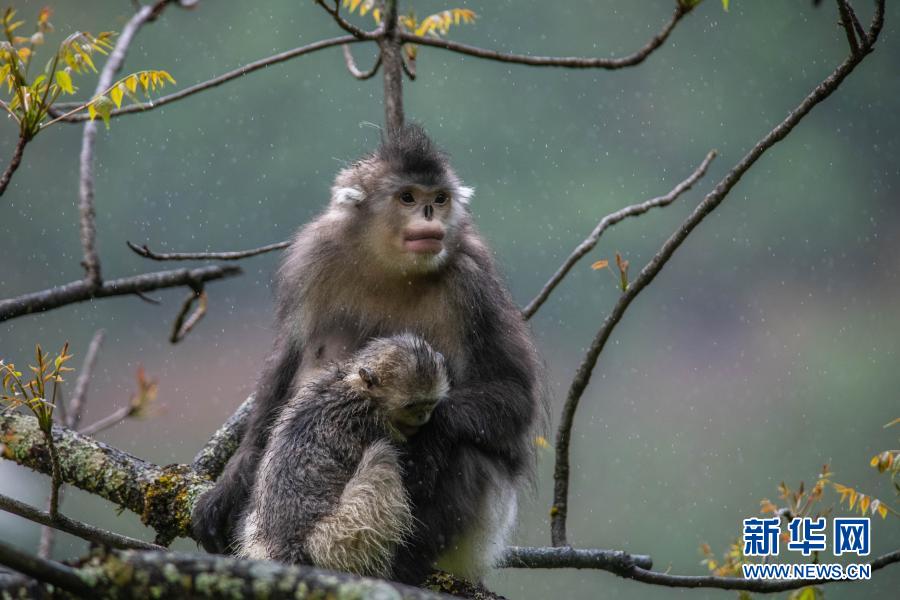 這是云南迪慶藏族自治州香格里拉滇金絲猴國(guó)家公園里的滇金絲猴(2020年5月23日攝)。新華社記者 胡超 攝