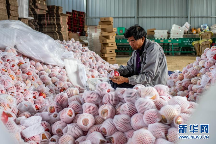 云南省會(huì)澤縣娜姑鎮(zhèn)牛泥塘村童盟種植專業(yè)合作社的農(nóng)民在分揀石榴(2020年9月29日攝)。新華社記者 胡超 攝