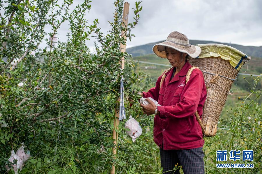 在云南省會(huì)澤縣娜姑鎮(zhèn)干海子村,干海子種植專業(yè)合作社的負(fù)責(zé)人莊錘兵正在地里管護(hù)石榴樹。