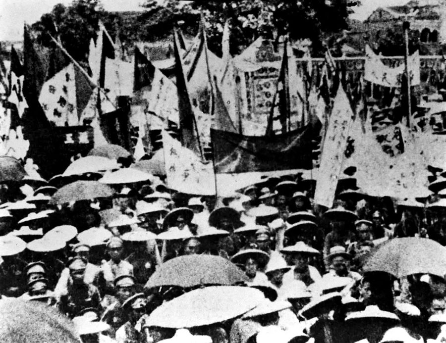 圖為北伐軍攻克武昌,武漢軍民舉行聯(lián)歡大會 新華社圖片