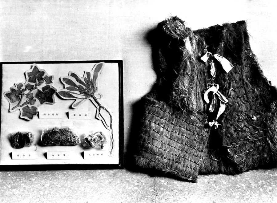 紅軍長(zhǎng)征時(shí)吃過(guò)的野菜的標(biāo)本(左)和穿過(guò)的棕背心 新華社圖片