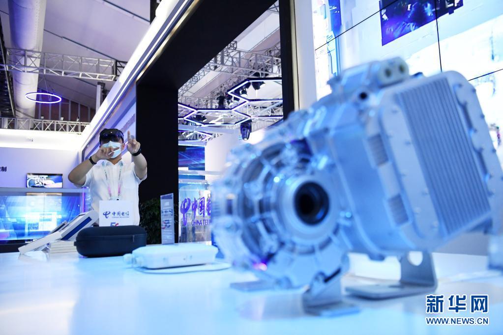 在重慶舉行的2020線上中國(guó)國(guó)際智能產(chǎn)業(yè)博覽會(huì)上,工作人員演示“5G+AR遠(yuǎn)程運(yùn)維技術(shù)”(2020年9月15日攝)。新華社記者 唐奕 攝