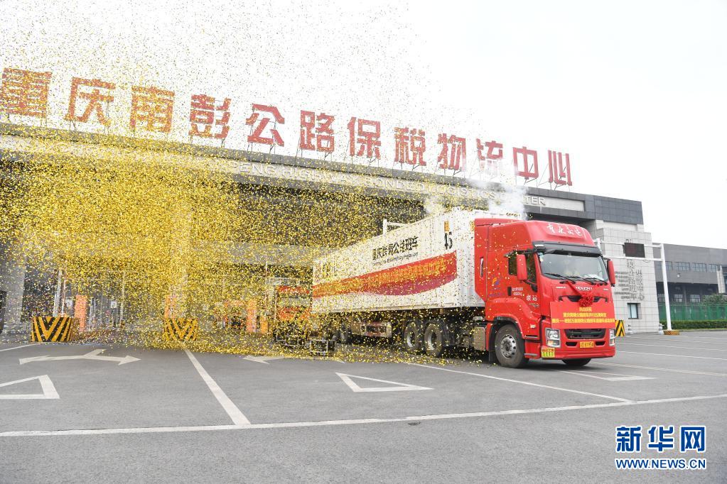 在重慶南彭公路保稅物流中心,重慶至老撾萬(wàn)象跨境公路班車(chē)直通車(chē)發(fā)車(chē)(4月28日攝)。新華社記者 唐奕 攝