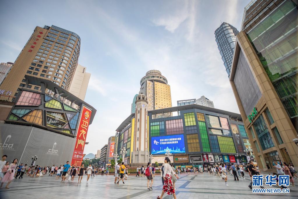 游客在重慶市渝中區(qū)解放碑步行街觀光游玩(2019年8月20日攝)。新華社記者 黃偉 攝