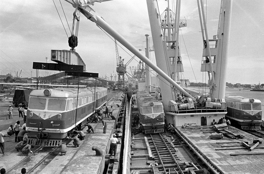 圖為中國(guó)援助坦贊鐵路的首批機(jī)車運(yùn)抵坦桑尼亞達(dá)累斯薩拉姆港口。新華社圖片
