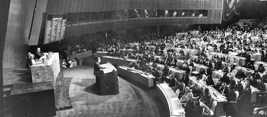 1971年9月,第二十六屆聯合國大會召開。從10月18日開始,聯合國大會就恢復中華人民共和國在聯合國的代表權問題進行了一周的激烈辯論。10月25日,第二十六屆聯合國大會表決剛一結束,紐約聯合國會議大廳里立刻一片沸騰,雷鳴般的掌聲和歡呼聲一浪高過一浪,此起彼伏,經久不息。新聞媒介評論道:“中國是在自己不在場的情況下,受到聯大三分之二以上國家的祝福,使聯合國發生根本變化?!?/p>