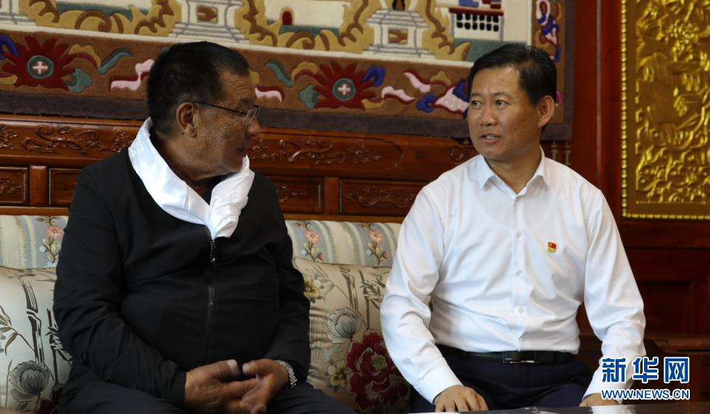 7月6日,張峰(中)在青海省海南藏族自治州共和縣恰卜恰鎮索吉亥村調研。新華社記者 央秀達珍 攝