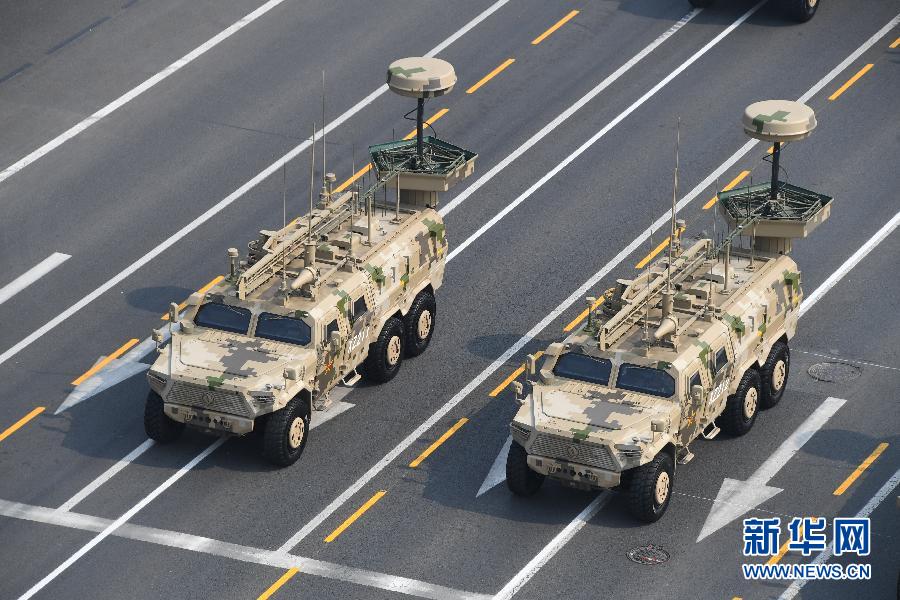 在李發義少將、楊小康少將率領下駛過的4型16輛裝備,均為首次接受檢閱。這些新型裝備為偵察干擾車和區域攔阻式干擾車,具有部署靈活、機動性強等特點,作戰能力較強,是我軍新一代戰術電子對抗裝備體系重要組成部分。