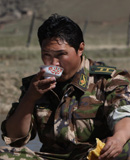 在海拔4300多米的當(dāng)雄公路段見到魯海山的時候,他剛乘車13個多小時從格爾木趕回來。他中等個頭,黝黑臉龐,說話時目光炯炯。