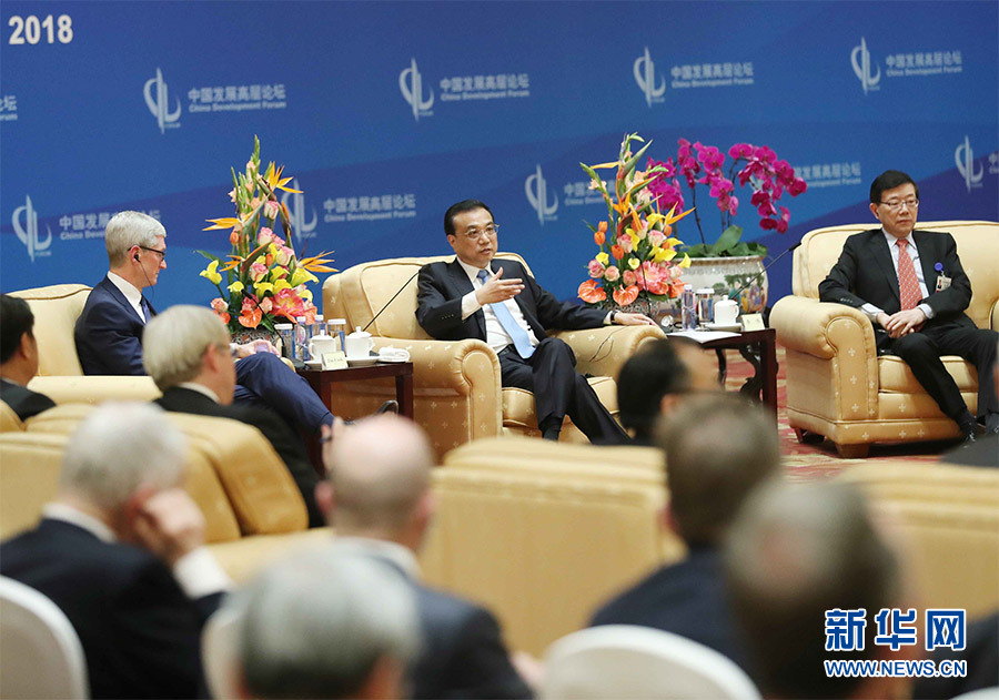 3月26日,國務(wù)院總理李克強(qiáng)在北京會(huì)見出席中國發(fā)展高層論壇2018年年會(huì)的外方代表并同他們座談。 新華社記者 劉衛(wèi)兵 攝