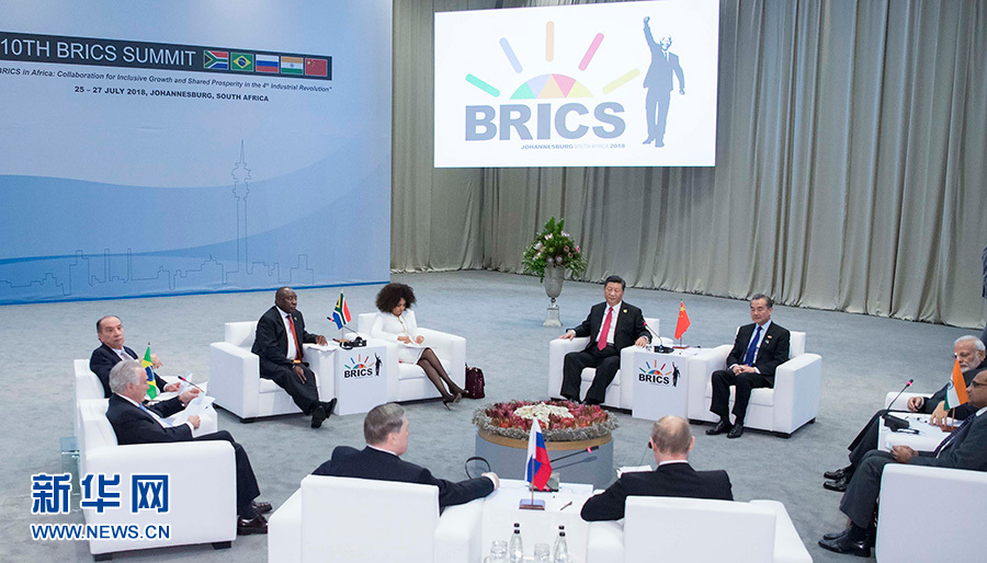 7月27日,紀(jì)念金磚國家領(lǐng)導(dǎo)人會晤10周年非正式會議在南非約翰內(nèi)斯堡舉行。中國國家主席習(xí)近平、南非總統(tǒng)拉馬福薩、巴西總統(tǒng)特梅爾、俄羅斯總統(tǒng)普京、印度總理莫迪出席。 新華社記者 李濤 攝