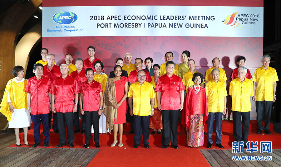 11月17日,國家主席習(xí)近平在莫爾茲比港出席巴布亞新幾內(nèi)亞總理奧尼爾和夫人為出席亞太經(jīng)合組織第二十六次領(lǐng)導(dǎo)人非正式會(huì)議的各成員經(jīng)濟(jì)體領(lǐng)導(dǎo)人、代表及配偶舉行的歡迎晚宴。這是晚宴前集體合影。 新華社記者 謝環(huán)馳 攝