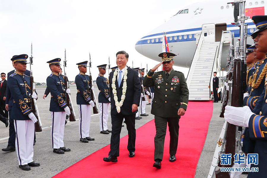 11月20日,國家主席習(xí)近平抵達(dá)馬尼拉,開始對菲律賓共和國進(jìn)行國事訪問。這是習(xí)近平在機(jī)場受到菲律賓政府高級官員熱情迎接。 新華社記者 謝環(huán)馳 攝