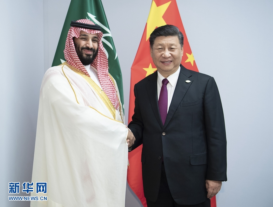當?shù)貢r間11月30日,國家主席習(xí)近平在布宜諾斯艾利斯會見沙特阿拉伯王儲穆罕默德。 新華社記者 李濤 攝