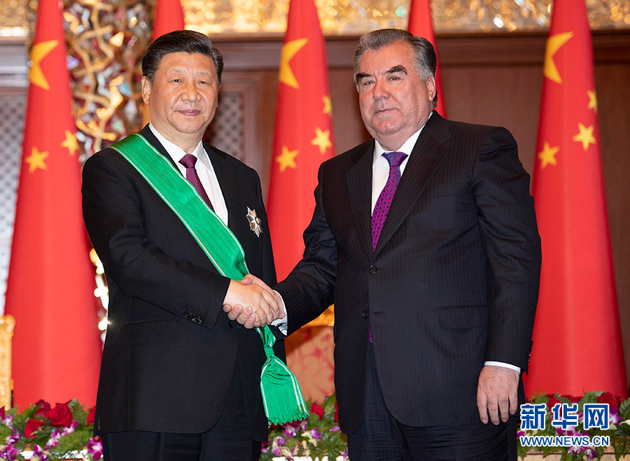 習(xí)近平出席儀式 接受塔吉克斯坦總統(tǒng)拉赫蒙授予“王冠勛章”
