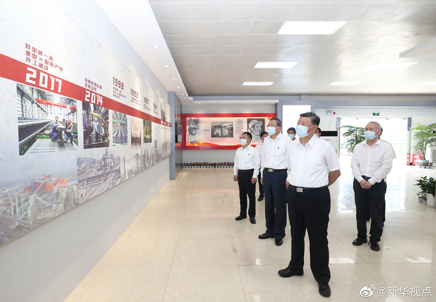 19日上午,正在安徽考察調研的習近平總書記走進中國寶武馬鋼集團優質合金棒材車間,冒著高溫察看生產運行情況,并同勞動模范、工人代表親切交流。習近平指出,在抗擊新冠肺炎疫情過程中,馬鋼較早復工復產,實現了產量、營銷收入同比雙升,展現了國有經濟的強大韌性。他勉勵馬鋼在長三角一體化發展中把握機遇、順勢而上,特別是要把自身改革發展同長三角一體化發展有機結合銜接,力爭在長三角一體化發展中不斷發展壯大自己,也為長三角一體化發展作出自己的貢獻。(文字記者:張曉松 攝影記者:鞠鵬 王曄 燕雁)