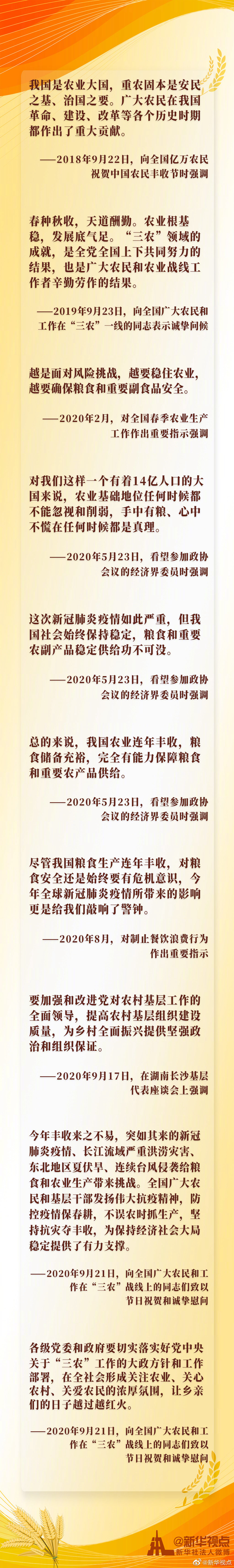 春種秋收,天道酬勤。今天是第三個中國農民豐收節,一起重溫習近平總書記關注農業,關心農村,關愛農民的金句。