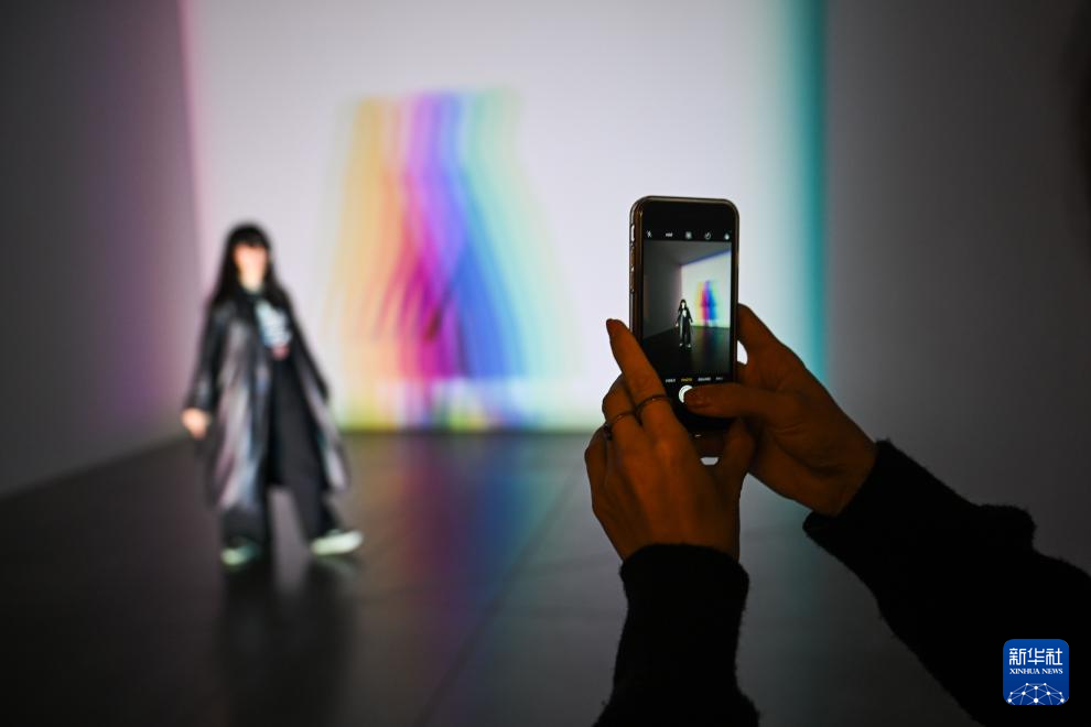 10月10日,参观者在土耳其伊斯坦布尔现代艺术博物馆内拍照。