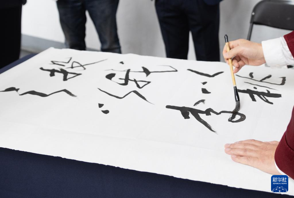 5月3日,嘉宾在墨西哥首都墨西哥城举办的“兰亭·雅集”中国书法展上展示书法技艺。